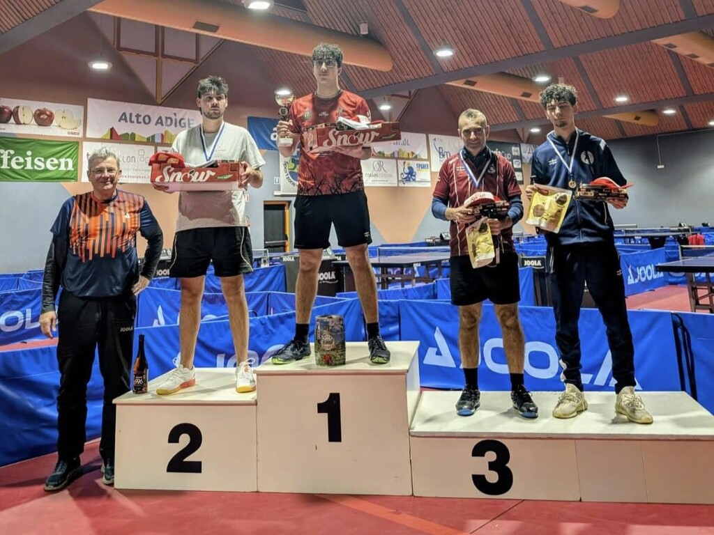 In Alto Adige è invece il Santa Tecla Nulvi a mostrare i muscoli grazie all’impresa del lombardo Mattia Cuoluvaris ex Villa Romano’. Nella fase a gironi, pur dominando il suo, non dà l’impressione di essere in grado di sferrare il colpaccio. Poi si trasforma escludendo dalla competizione Carlo Porteri, Filippo Ferrari e Nicola Aparo (tutti e tre dell’Associazione Sportiva Dilettantistica Tennistavolo Marco Polo) e in finale Daniele Scotti (A.S. Dilettantistica Gruppo Giovanile San Michele)