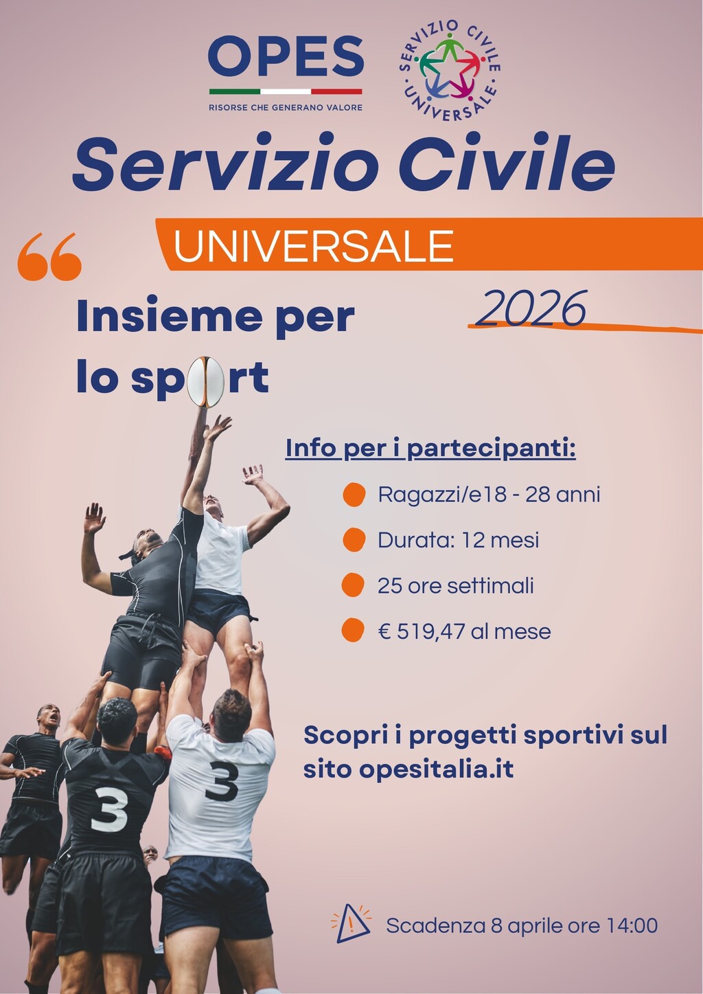 La domanda di partecipazione dovrà essere presentata on line entro le ore 14 dell’8 aprile 2026 al link https://domandaonline.serviziocivile.it/ .Tramite Spid o Cie.
